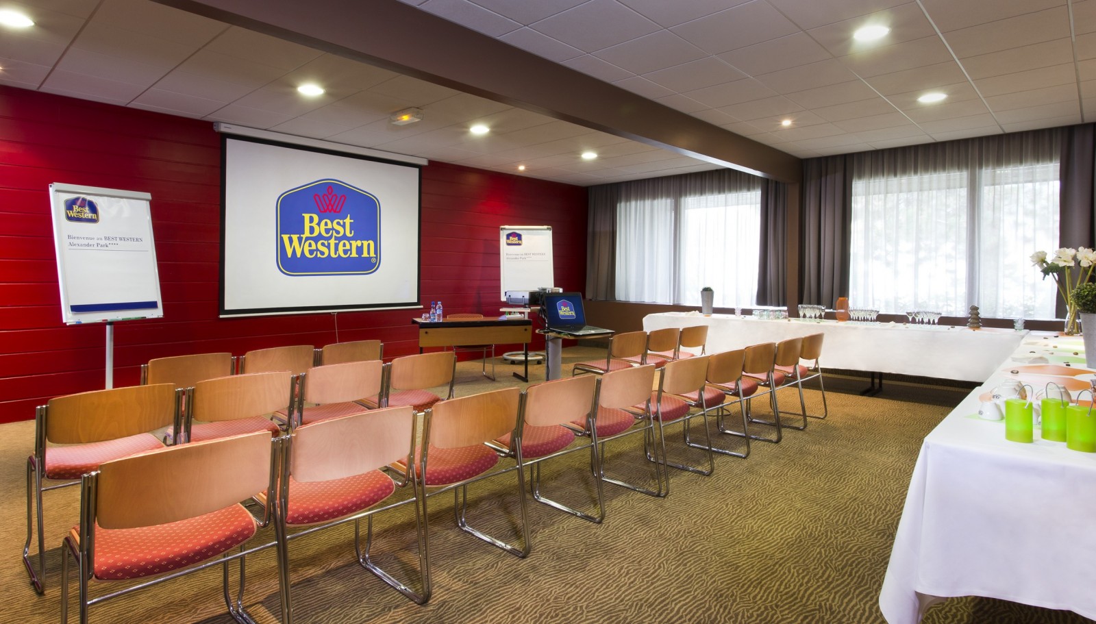 Le Best Western Alexander Park Chambéry conjugue harmonieusement fonctionnalité moderne et cadre verdoyant au cœur de la préfecture savoyarde. Cet établissement contemporain se distingue par son vaste parc arboré de 6 000 m², véritable havre de verdure propice à la détente et aux pauses inspirantes entre les sessions de travail. L’architecture intègre avec élégance des espaces modulables et lumineux, pensés pour accueillir séminaires et événements professionnels dans des conditions optimales. Un espace de coworking équipé répond aux besoins des professionnels nomades, tandis que le restaurant propose une cuisine soignée valorisant les produits régionaux. Les chambres offrent confort et quiétude après des journées studieuses. La situation géographique permet de rejoindre la gare TGV en 10 minutes seulement, facilitant l’accès depuis Lyon, Paris ou Genève. Chambéry dévoile son riche patrimoine avec le château des ducs de Savoie, la célèbre fontaine des Éléphants et ses ruelles médiévales pittoresques. Les environs invitent à découvrir le lac du Bourget et les stations de ski des Bauges. L’hôtel propose 101 chambres confortables et 7 salles modulables de 24 à 165 m², accueillant jusqu’à 150 personnes.